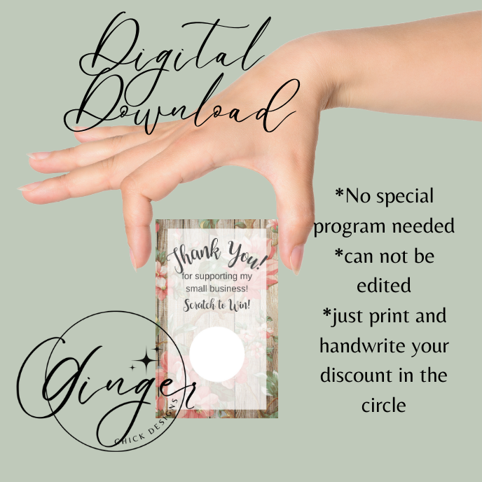 Experience the thrill of a scratch-off ticket game with a rustic, barn-themed twist. Our Floral Barn Digital Scratch-Off Ticket allows you to print and customize your own prizes, making it perfect for any occasion. Choose your own prizes and let the excitement begin!