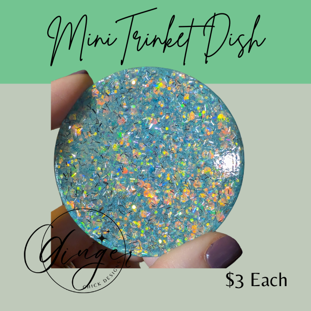 This Mini Trinket Dish is perfect for keeping your rings and other small items safe and organized! With its compact 2 inch size and round shape, it's ideal for placing by the sink or on a bedside table. Crafted with durable epoxy resin, it's both functional and stylish.