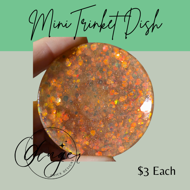 This Mini Trinket Dish is perfect for keeping your rings and other small items safe and organized! With its compact 2 inch size and round shape, it's ideal for placing by the sink or on a bedside table. Crafted with durable epoxy resin, it's both functional and stylish.