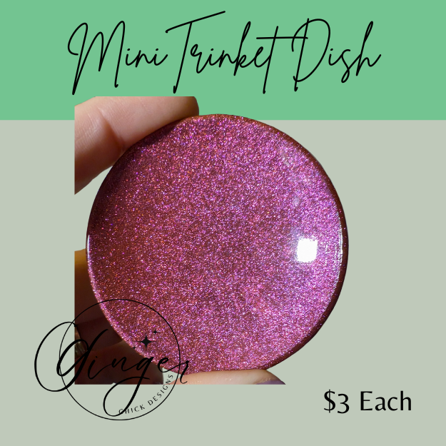 This Mini Trinket Dish is perfect for keeping your rings and other small items safe and organized! With its compact 2 inch size and round shape, it's ideal for placing by the sink or on a bedside table. Crafted with durable epoxy resin, it's both functional and stylish.