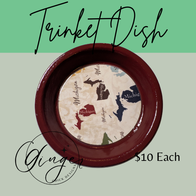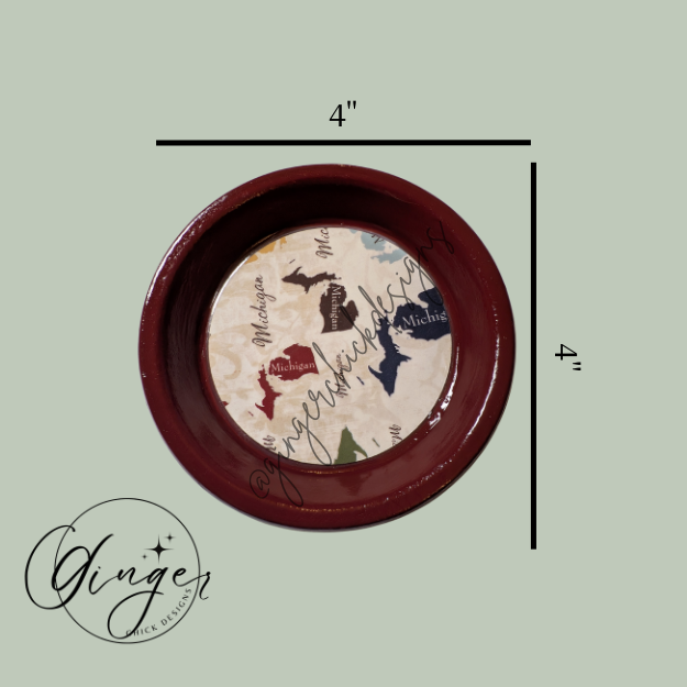 Show off your mitten love with our State of Michigan Mandala Trinket Dish! Hand-painted with care, this 4-inch dish features a unique design inspired by the beauty of the Great Lakes State. Whether you call Michigan home or carry it in your heart, this dish is the perfect way to celebrate your state pride in style.
